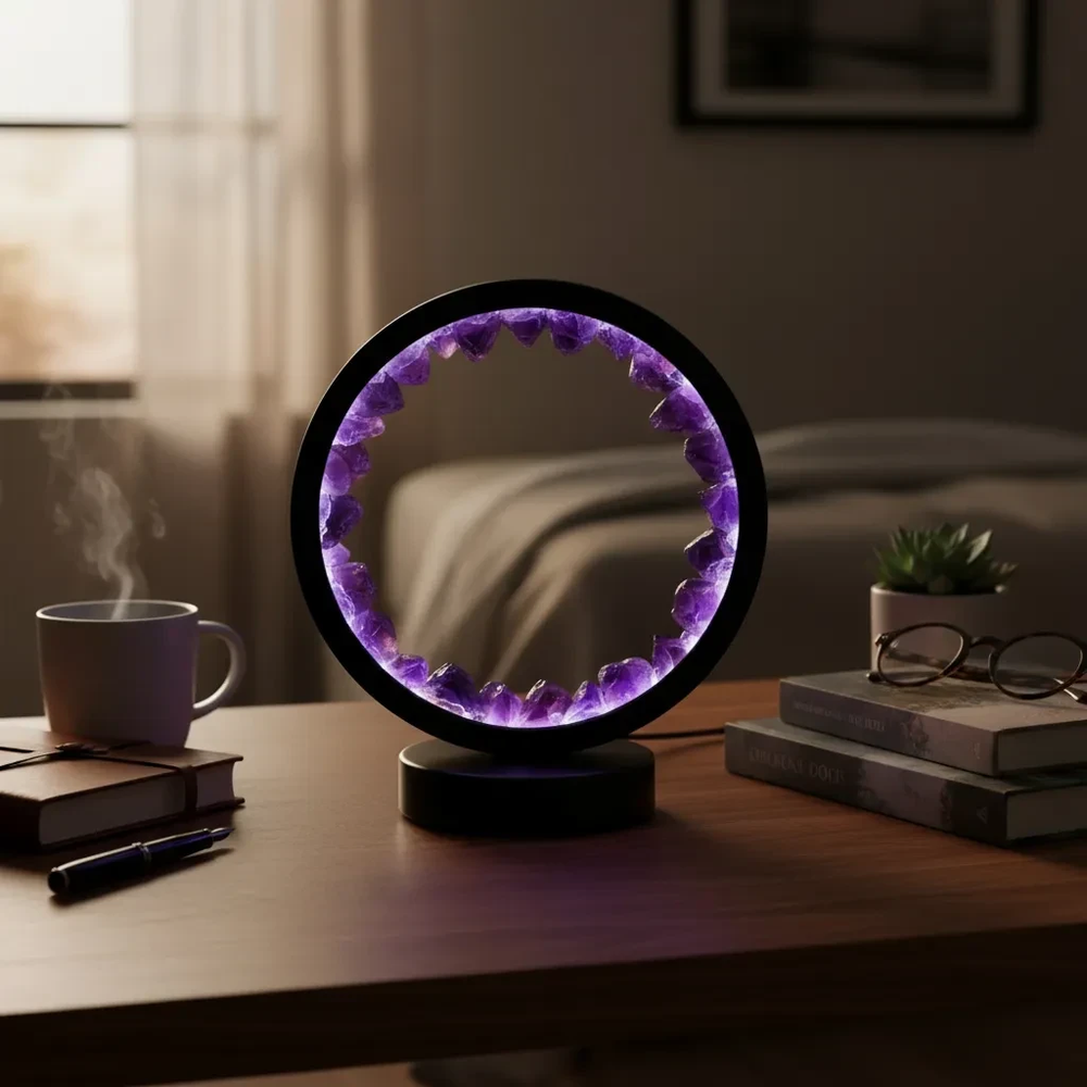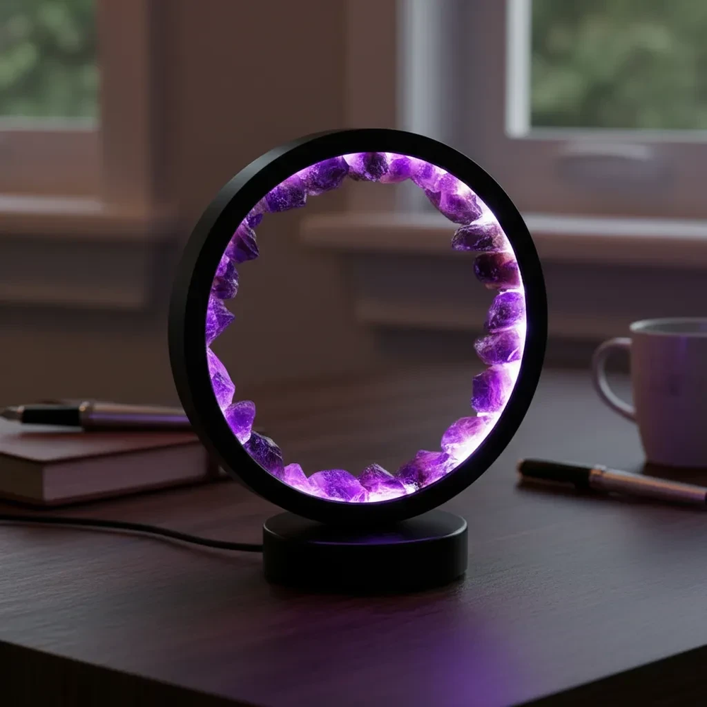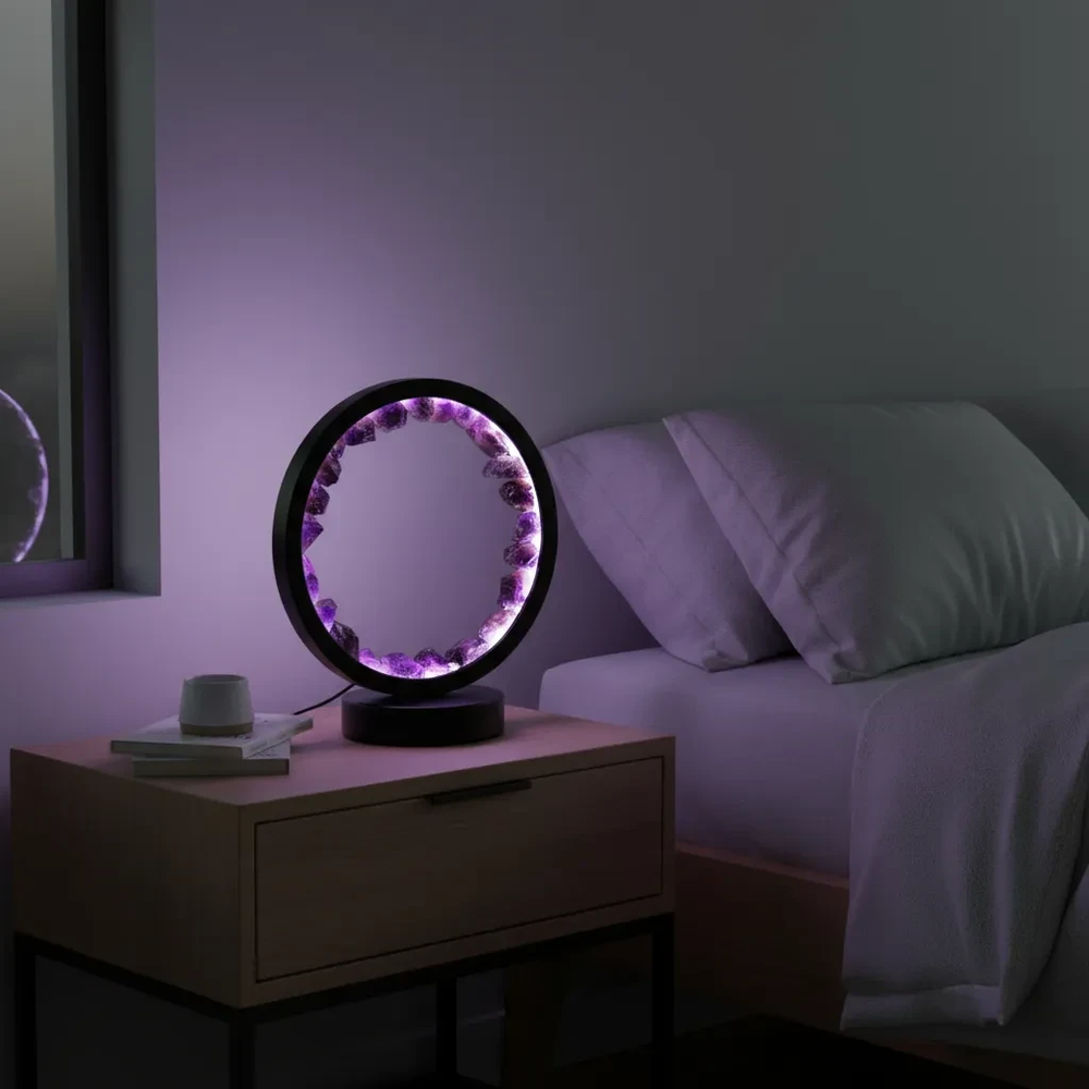 Lámpara De Luz Con Piedras Naturales - Amatista Grande