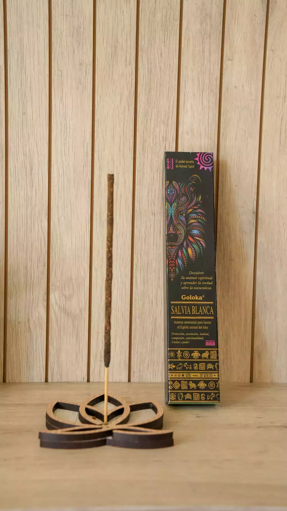 Especificaciones: • Marca: Goloka • Tipo: Sahumerio importado • Cantidad: 10 varillas aprox. • Duración: 40-60 minutos • Hecho en India