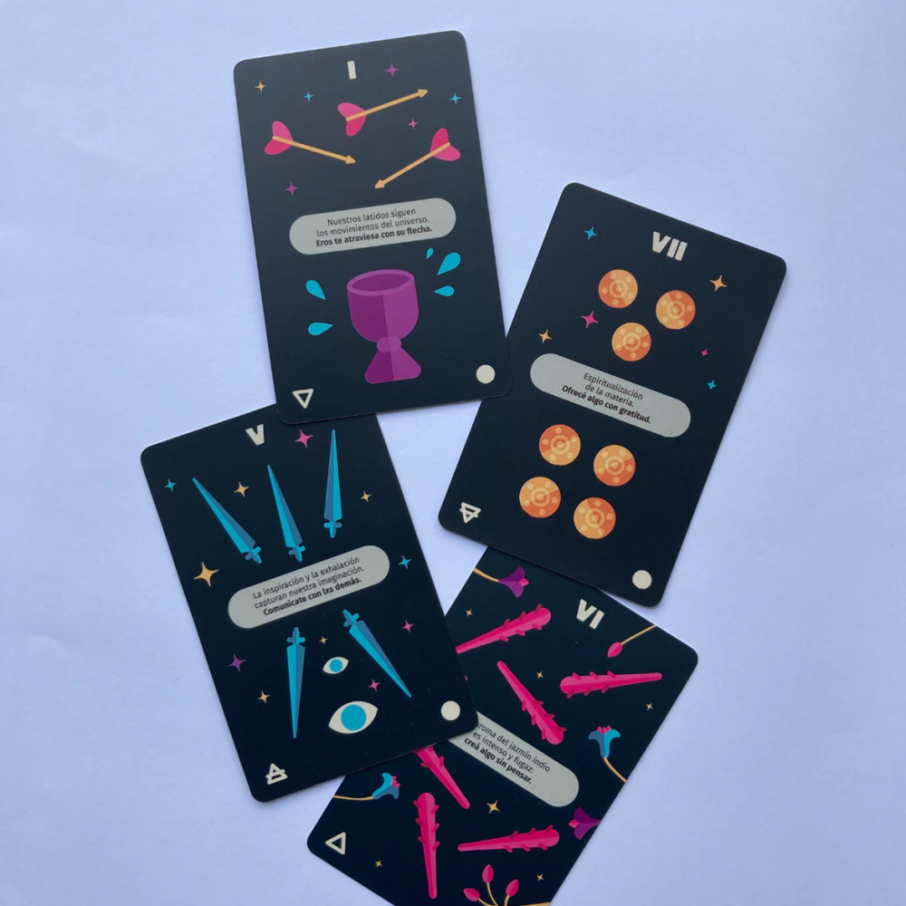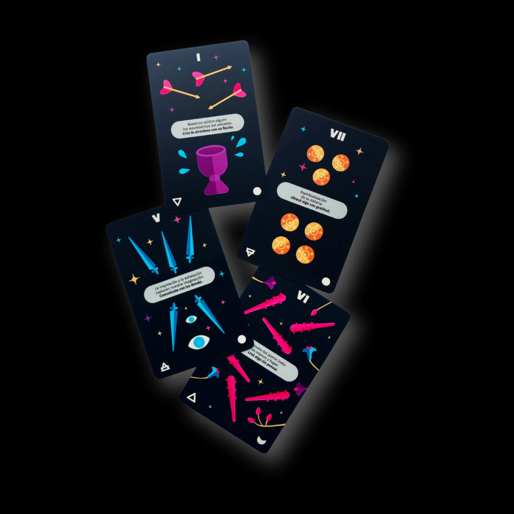 Dejá que los Arcanos Menores hablen. Cada carta es un portal hacia historias, emociones y revelaciones que esperan ser descubiertas. Con este mazo, cada tirada es como un cuento que va tomando forma en tus manos, una herramienta para explorar lo visible y lo oculto en tu vida.